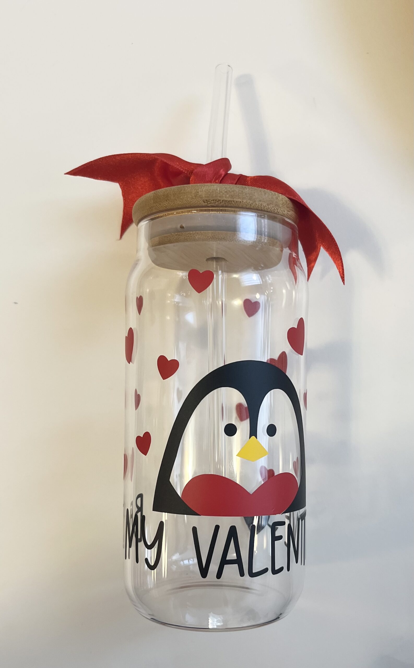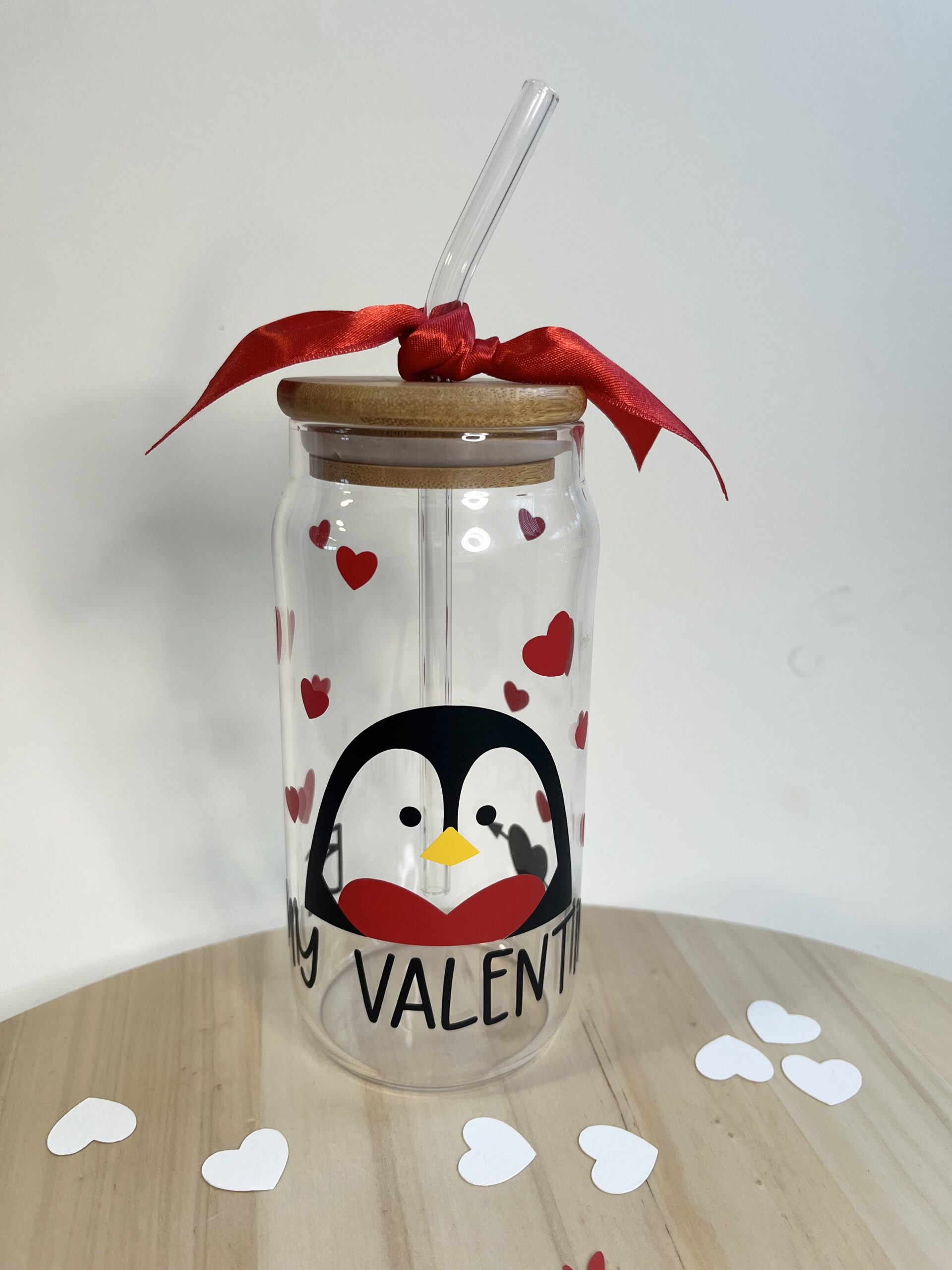 Máme pre Vás skvelý nápad na darček – sklenený pohár s obľúbeným dizajnom zamilovaného tučniačika.